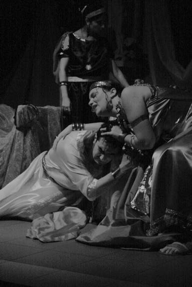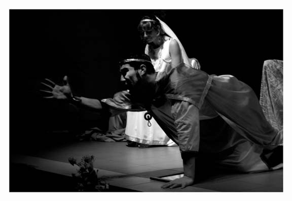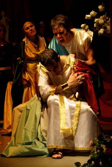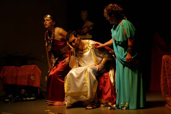 Gli ultimi giorni di Caligola, vengono in questo spettacolo, scandagliati, analizzati, valutati, per capire, per non dare giudizi sommari o errati. La sua lucida follia, che cerca la logica portata all’esasperazione, l’abbandono ad un lirismo disumano spinto fino all’assurdo, il dolore per la morte della sorella-amante, il travaglio interiore di un imperatore che brancola senza pace per le stanze del palazzo imperiale, ci danno un quadro desolante di un uomo che soffre la solitudine di chi è condannato all’isolamento, proprio dei mostri o dei potenti; lui ama senza amore e vive una vita che nel suo spirito sta morendo tra atroci tormenti!
