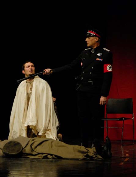 Spettacolo in due atti liberamente tratti da “Se questo è un uomo” di Primo Levi, “Zio Arturo” di Horowitz, “Terrore e miseria nel Terzo Reich” di Bertolt Brecht, “Dio Kurt” di Moravia. All’inizio è stata prevista, quando necessaria, una introduzione per spiegare lo spettacolo ai ragazzi.