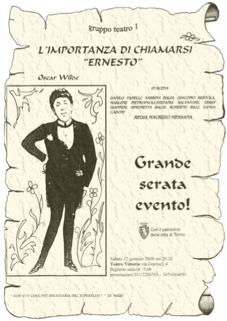 È uno spettacolo divertente e leggero, ma non privo di significato. Gli attori si divertono ad interpretare ruoli di personaggi ironici, arguti e dalle varie sfaccettature. L’occhio divertito e sarcastico dell’autore mette in luce l’atteggiamento superficiale e conformista della società del suo tempo, la quale, troppo presa dalle apparenze, dalle convenzioni e dai tanto rigorosi, quanto complicati cerimoniali ufficiali, perde di vista la sostanza delle cose, per lasciar posto ad una superficie sempre più luccicante e falsa. O. Wilde con la punta della sua penna, un po’ avvelenata, ci dà il ritratto di un’epoca quanto mai attuale con un umorismo tagliente, ma decisamente fresco e moderno.