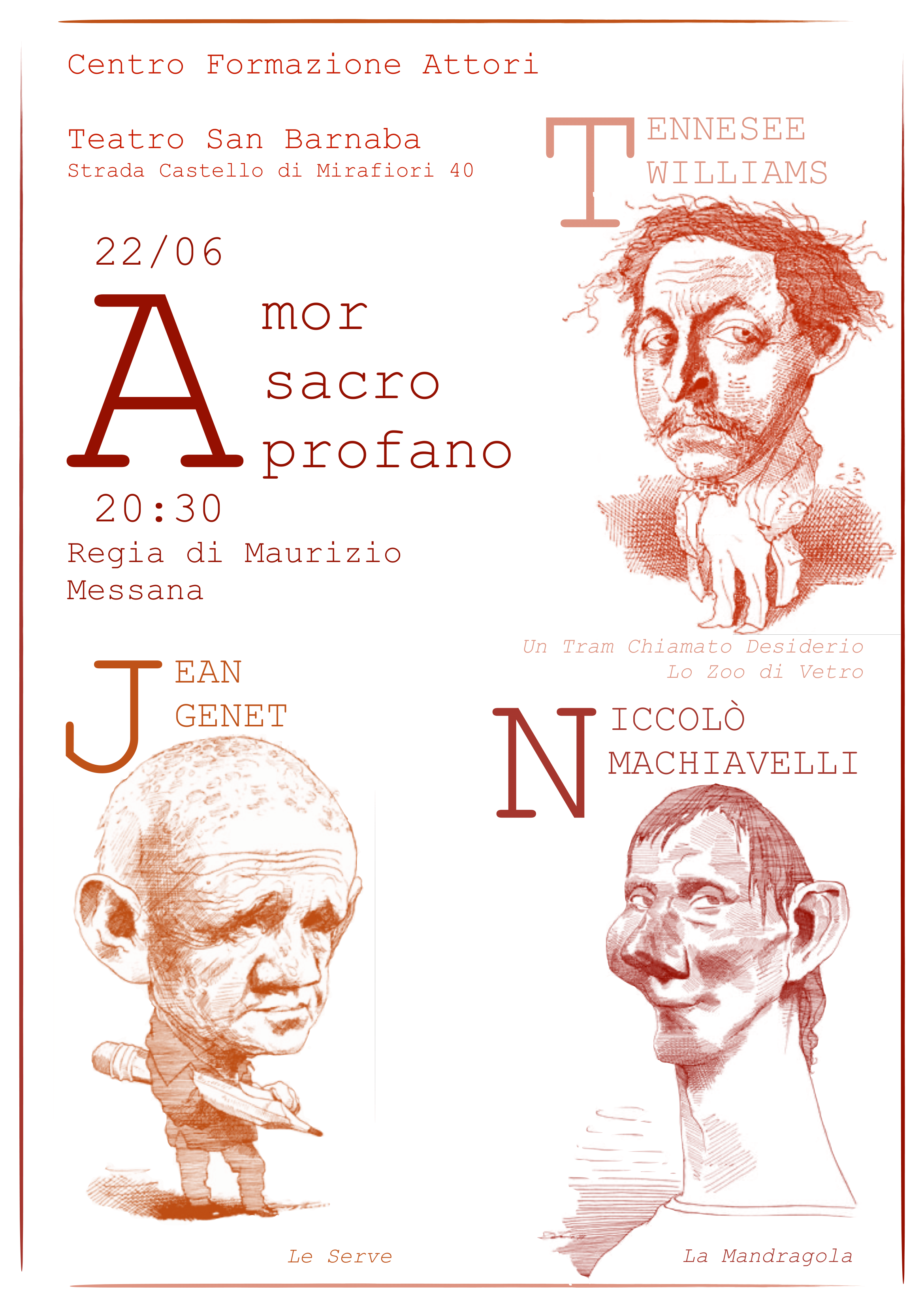 Quattro pieces teatrali: "Lo zoo di vetro" e "Un tram che si chiama desiderio" di Tennessee Williams, "Le serve" di Genet, "La mandragola" di Machiavelli. Esempi teatrali accomunati tra loro dall'amore tradito, dalla passione e dalla beffa.