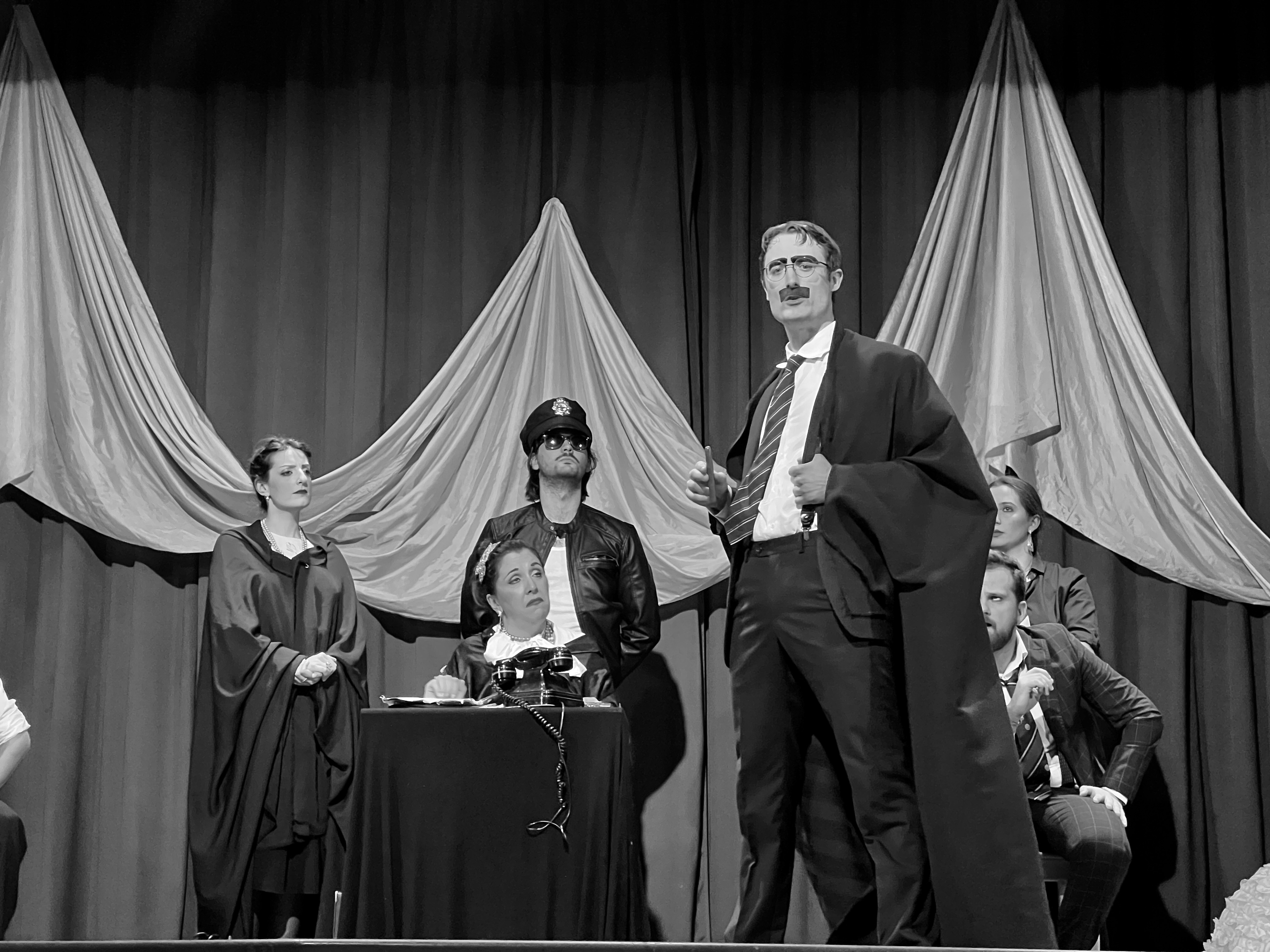 Tratto dalle grandi e ineguagliate commedie dei Fratelli Marx. L'iperbole della vita vissuta come un funabolo, in bilico tra verità e fantasia, le "inappellabili scemenze", il gioco al delirio, alla beffa e al capitombolo dell'ironia sulla vita e le sue deformità, portano certamente al divertimento e al coinvolgimento involontario dello spettatore che, suo malgrado, si trova in un mondo tanto fantasioso quanto paradossale e realistico al tempo stesso.