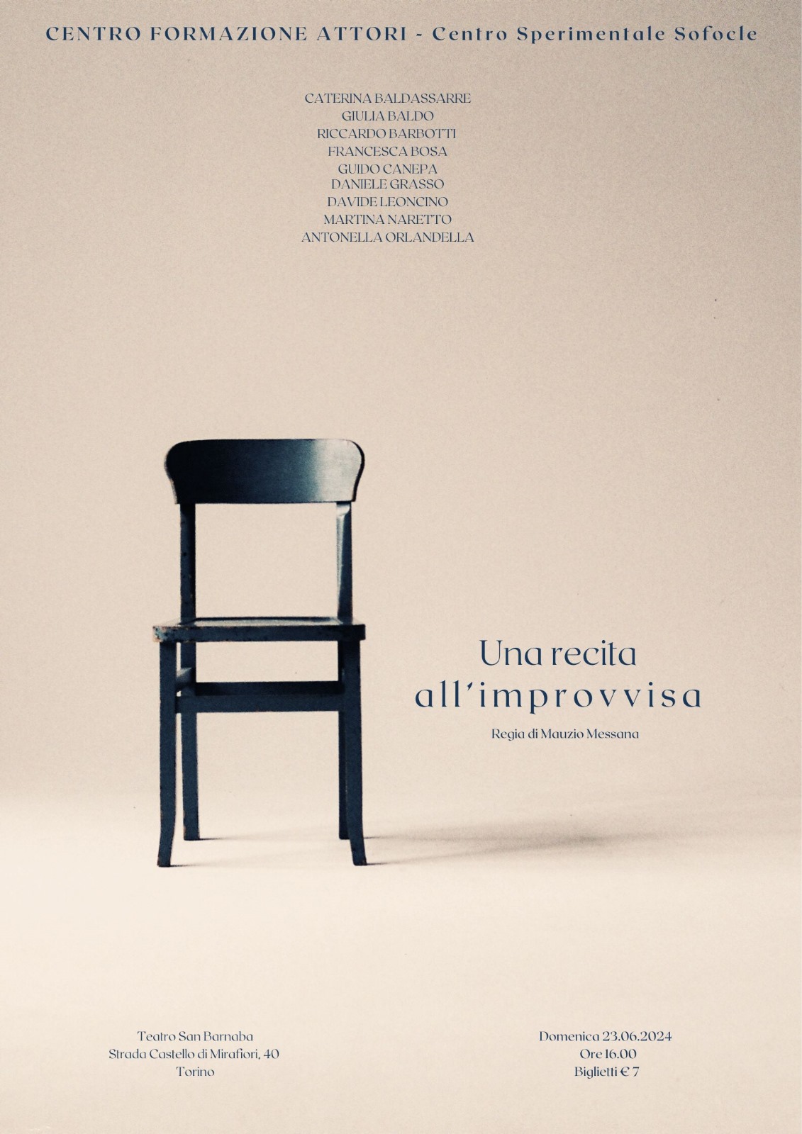 Una carrellata di brani, dalla tragedia greca al teatro contemporaneo, da Sofocle a Pirandello, da Aristofane a Dario Fo. In scena gli allievi del primo anno accademico si cimentano nei più famosi spettacoli, sia drammatici che comici, del miglior teatro internazionale.