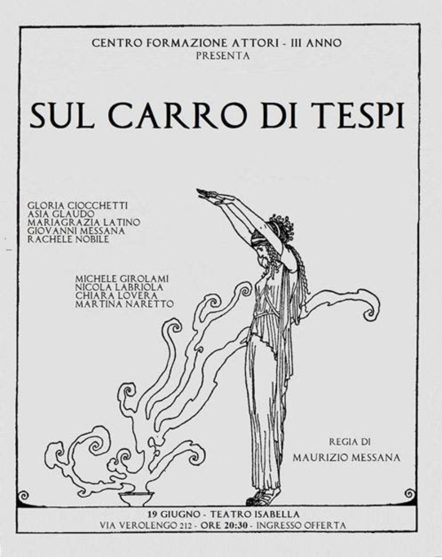 Gli attori della compagnia all’ultimo anno di scuola preparano un ventaglio di opere che hanno origine nell’antica Grecia. Verranno rappresentate le tragedie di “Andromaca”, “Medea”, “Orestea”, ma anche il teatro comico greco con le più esilaranti pagine tratte dalla “Lisistrata” di Aristofane. I nostri giovani attori, come Tespi, che fu primo attore della storia, passeranno dal drammatico al comico donando profondità di pensiero accompagnato da un sano divertimento.