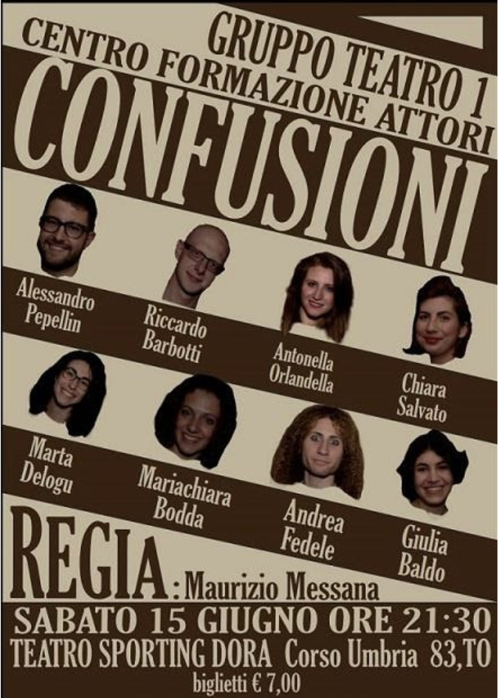 In scena: Andrea Fedele, Maria Chiara Bodda, Antonella Orlandella, Riccardo Barbotti, Giulia Baldo, Marta Delogu, Alessandro Peppelin, Chiara Salvato.
