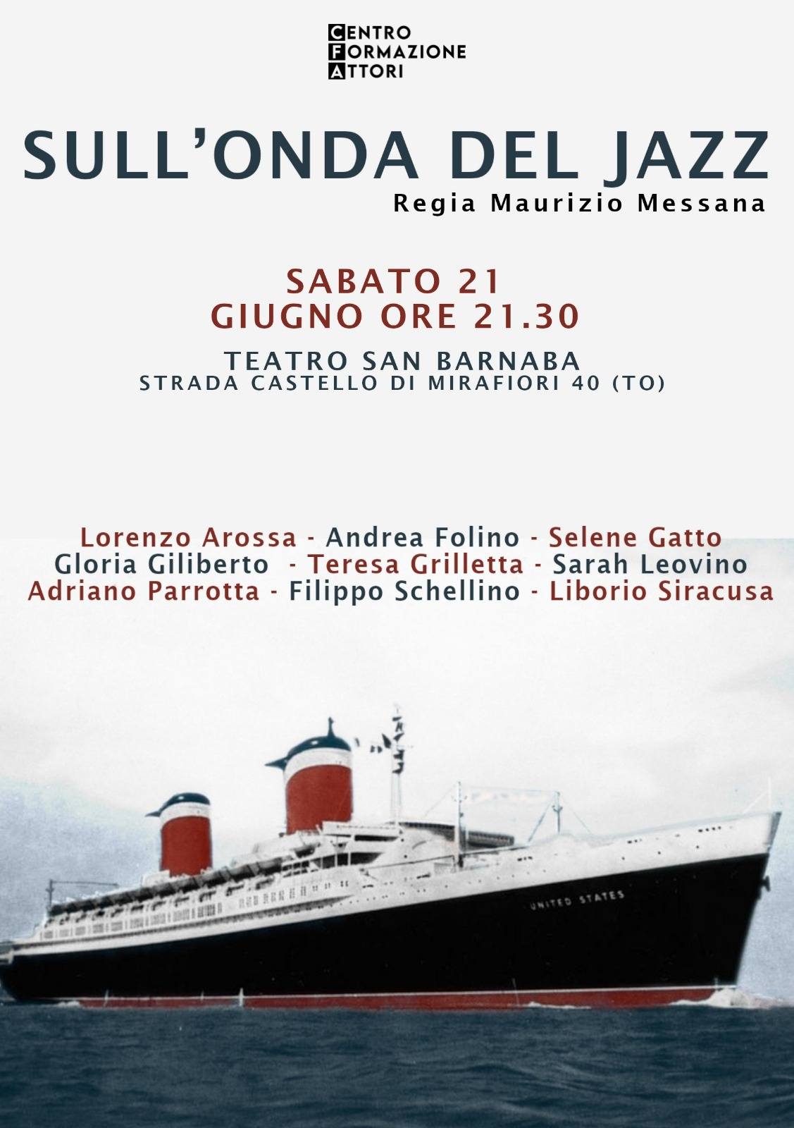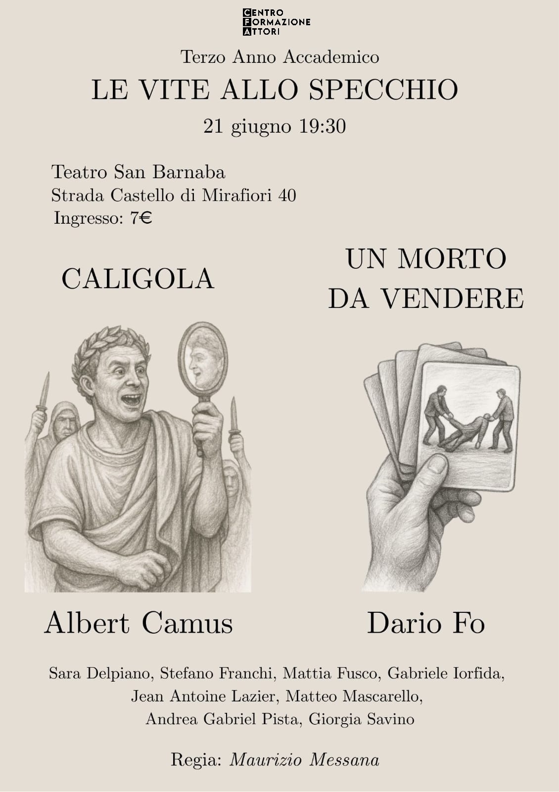 In scena: Andrea Levis, Domiziana Aimar, Ermanno Giampetruzzi, Miriana Feninno, Sofia Depasquale, Giulia Baldo, Federica Messana, Giulia Fiore, André Torres, Martina Naretto, Anna Ambiveri.