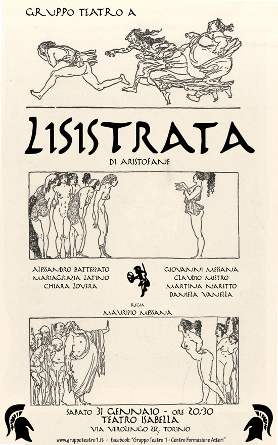 Aristofane si diverte a prendere in giro uomini dall’atteggiamento virile che poi cadono tra le maglie del più banale ricatto domestico e pone l’attenzione sulla realtà dura del vivere in uno stato corrotto e minacciato da continue lotte. Nulla di nuovo sotto il cielo, è il caso di dire! La storia inesorabilmente, banalmente, si ripete e giunge a noi, che viviamo quotidianamente minacce alla pace e giochi di potere che diventano triste consuetudine. Aristofane vedeva nello sciopero dell’“amore” una efficace soluzione, e oggi? Chissà se le donne torneranno come un tempo a portare tutti alla ragione, con qualche opportuna ed efficacissima negazione!